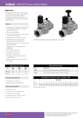 Operating Specifications 204/205 Series Valve Friction Loss Data – kPa