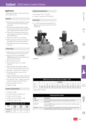 • Full stainless-steel, “floating” metering 2500 Series Valve Friction Loss Data – kPa