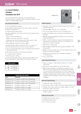 KD400-EXT-A 4 Station, outdoor, un-corded • Transformer output: 24 VAC, 0.8 amp (including master valve)