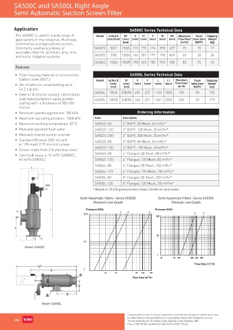 • Low flush rates, 6-10 m /h (SA500C), SA504C-80 4” Flanged, 80 Mesh, 80 m³/hr*