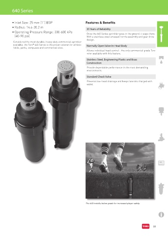 • Operating Pressure Range: 300-600 kPa Once the 640 Series sprinkler goes in the ground, it stays there.