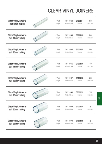 suit 19mm tubing Length Product Code Fineline Pack Size