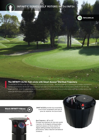 The INFINITY 34/54 is the Toro Premium full-circle golf sprinkler.  The dual trajectory main nozzle provides exceptional