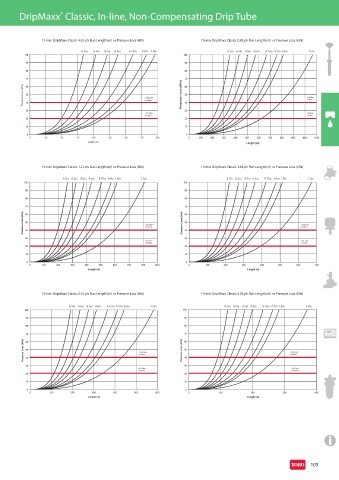 15 mm DripMaxx Classic 4.0 Lph Run Length (m) vs Pressure Loss (kPa) 19 mm DripMaxx Classic 0.8 Lph Run Length (m) vs Pressure Loss (kPa)