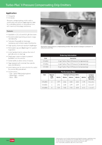 • 4mm tubing can be connected to the outlet 1014058 8 Lph Turbo-Plus II (Pressure Compensating)