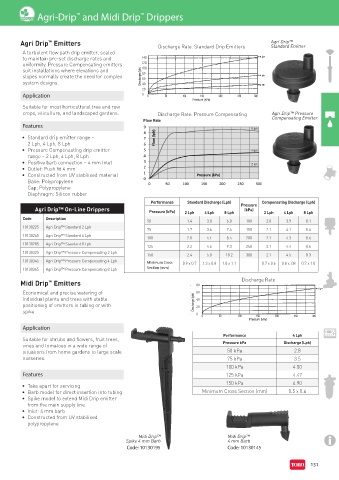crops, viticulture, and landscaped gardens. Discharge Rate: Pressure Compensating Agri Drip™ Pressure