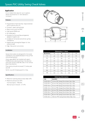 • Maximum pressure at 23°C S1520-05-A 15 mm PVC Swing Check Valve Slip x Slip