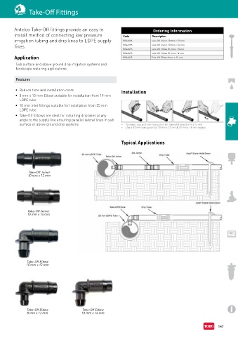 Antelco Take-Off fittings provide an easy to Ordering Information