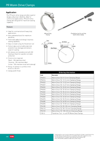• Non-perforated band for maximum Clamp worm drive clamp
