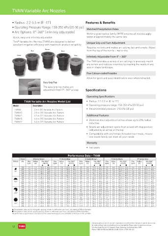 TVAN8 2.4 m (8’) Variable Arc Pattern • Recommended pressure: 210 kPa (30 psi)