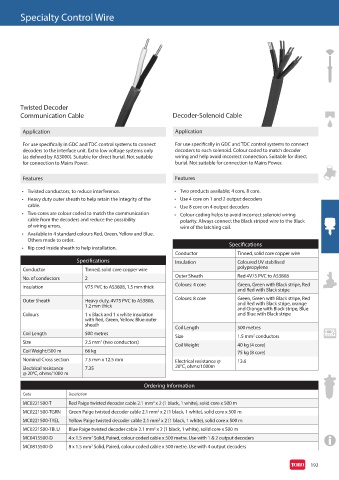 • Two cores are colour coded to match the communication • Colour coding helps to avoid incorrect solenoid wiring