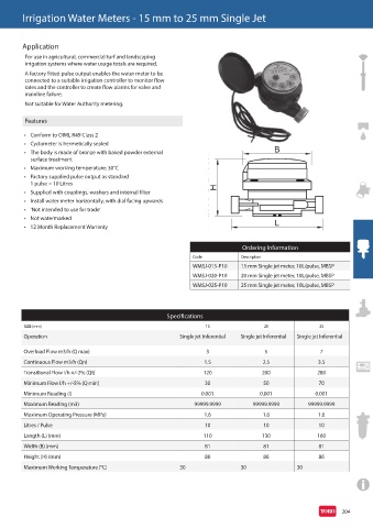 Irrigation Water Meters - 15 mm to 25 mm Single Jet