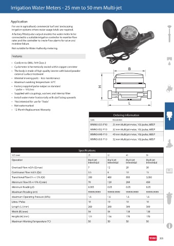 Irrigation Water Meters - 25 mm to 50 mm Multi-jet