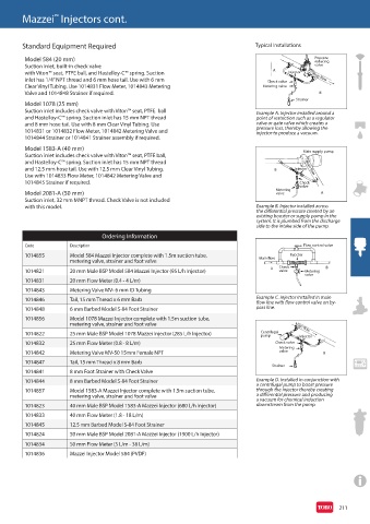 Suction inlet includes check valve with Viton™ seat, PTFE ball Example A. Injector installed around a
