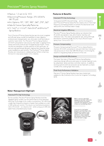Toro’s Precision™ Series Spray Nozzles are the most complete 25 mm/hr precipitation rate, which better matches soil