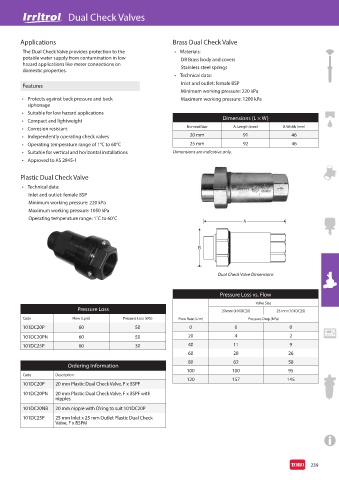 The Dual Check Valve provides protection to the • Materials: