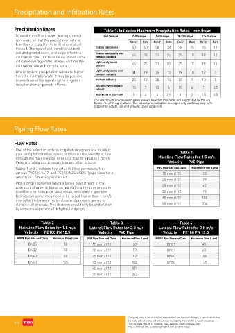 Precipitation Rates Table 1: Indicative Maximum Precipitation Rates – mm/hour