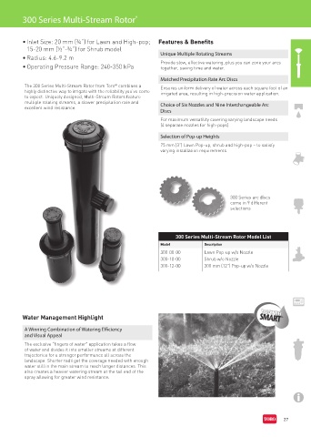 The 300 Series Multi-Stream Rotor from Toro combines a Ensures uniform delivery of water across each square foot of an