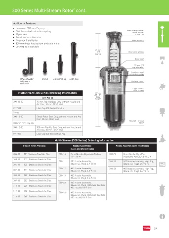 304-00 90˚ Stainless Steel Arc Disc 300-15 Omni Nozzle, Adjustable Radius, 300-25 Omni Nozzle, High Pop,