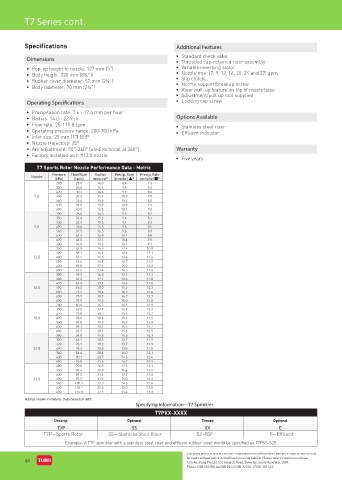 T7 Sports Rotor Nozzle Performance Data - Metric