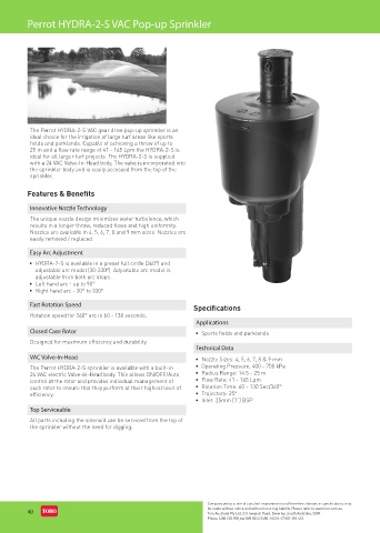 24 VAC electric Valve-in-Head body. This allows ON/OFF/Auto • Radius Range: 14.5 - 25 m