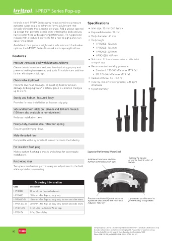 Irritrol’s new I-PRO™ Series spray heads combine a pressure- Specifications