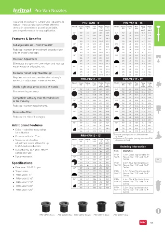• PRO-VAN12 15˚ 206 4.0 3.52 63.2 72.9 VAN15 Nozzle. Suit “HS” and “SLP”