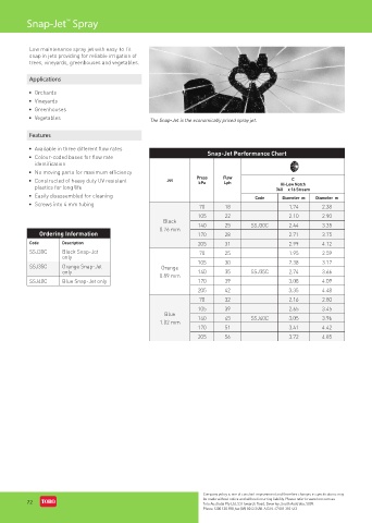 • Colour-coded bases for flow rate Snap-Jet Performance Chart