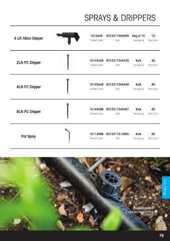 Adjustable Flow 1010826 9310317008264 Bag of 25 10 4L/h PC Dripper 1014044B 9310317340449 Packaging Pack Size