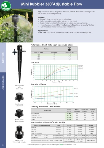 ADJUSTABLE Mini Bubbler Diameter of Throw 6 8 Number of Clicks 14 16 18 20 22