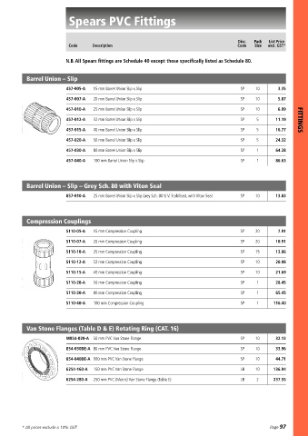 N.B. All Spears fittings are Schedule 40 except those specifically listed as Schedule 80.