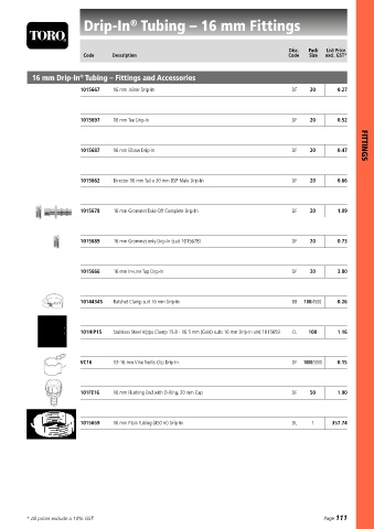 16 mm Drip-In Tubing – Fittings and Accessories Disc. Pack List Price