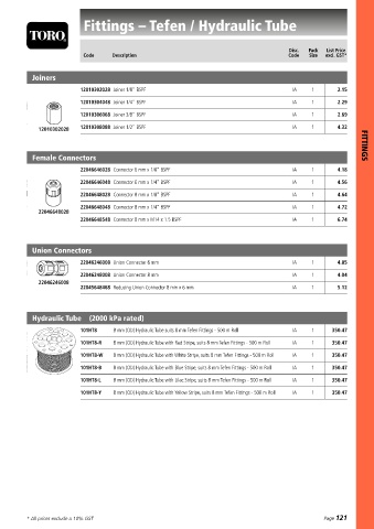 For 6 mm Toro Hydraulic Tube, please refer to page 171.