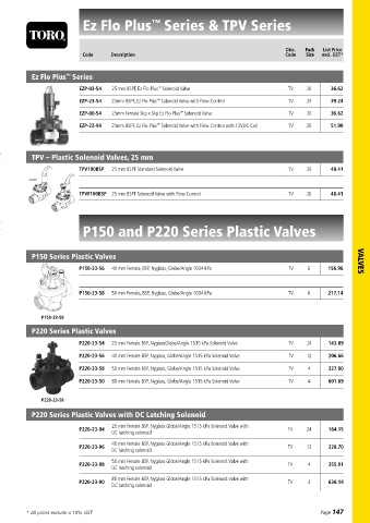 • 1200 kPa rated P150 Series Plastic Valves Disc. Pack List Price