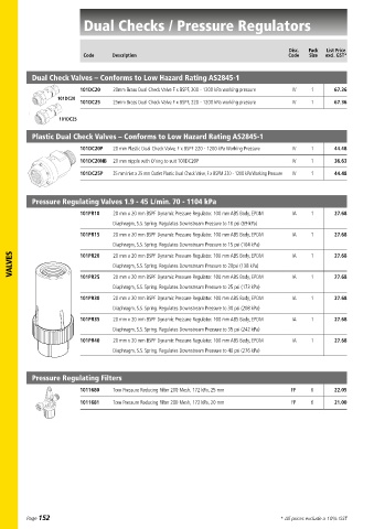 D ua l Che cks / P re ssu re Re gula tor s / Thr ea d T ape