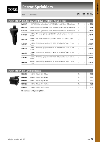 NB: Nozzles also suit Hydra-M Sprinklers.