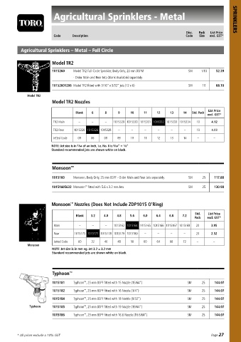 SPRINKLERS NOTE: Jet size is in /64 of an inch, i.e. No. 8 is /64”= /8” 10 11 12 13 14 10 4.03