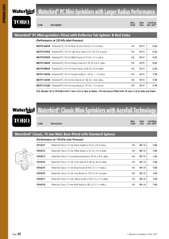 Code Waterbird VI – “Non PC”Mini-Sprinklers with Aerofoil Pack excl. GST*