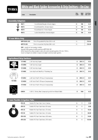 Notes 4 L/h E-2 Toro Ag USA Non-Compensating with 4 mm Barbed Outlet DE 1000 0.30