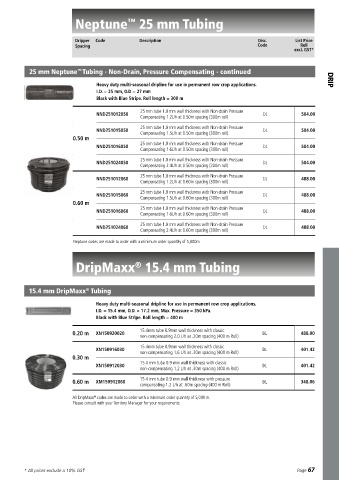 * All prices exclude a 10% GST Non-Compensating 1.6 L/h at .40 m spacing (600 m Roll) Page 67