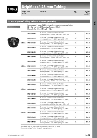 All DripMaxx codes are made to order with a minimum order quantity of 5,000 m. DL 0.85 510.00