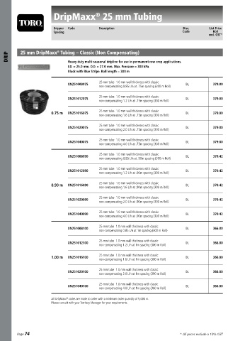 0.75 m XN251016075 Non-Compensating 1.2 L/h at .30 m spacing (600 m Roll) DL 379.00