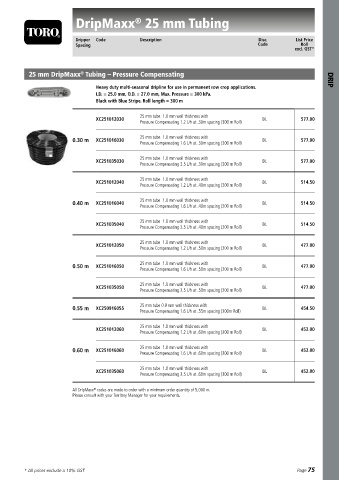 0.40 m XC251016040 Compensating 3.5 L/h at .30 m spacing (300 m Roll) DL 514.50