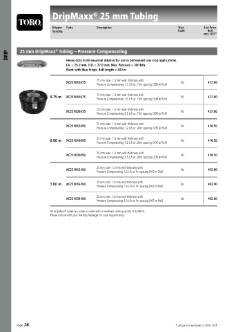 XC251035075 Compensating 1.6 L/h at .75 m spacing (300 m Roll) DL 427.00