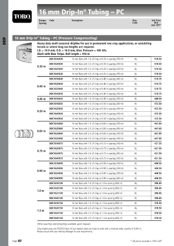 0.9 m DDC1620090 16 mm Tube with 2.0 L/h Drip at 0.90 m spacing (450 m) DL DL 1.30 0 404.50