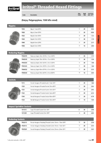 (Emjay, Polypropylene, 1500 kPa rated) Hexed Fittings
