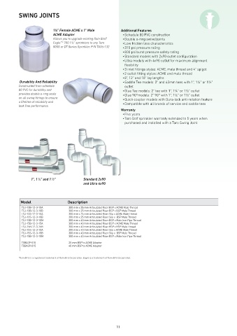 on all swing fittings to ensure • Quick coupler models with Dura-lock anti-rotation feature
