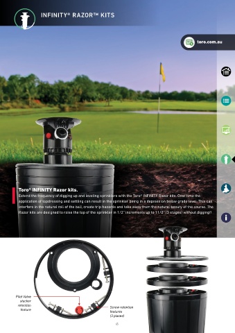 Extend the frequency of digging up and leveling sprinklers with the Toro® INFINITY Razor kits. Over time the