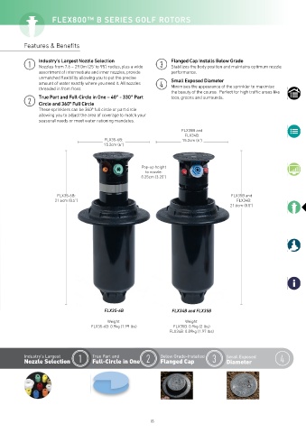 Nozzles from 7.6 – 29.0m (25’ to 95’) radius, plus a wide