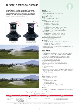 Example: When specifying a FLEX800 B Series Sprinkler with full circle - NPT threads, #34 nozzle, you would specify: FLX34B–02–3134